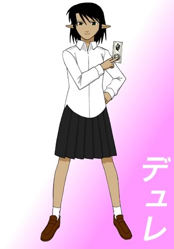 元祖・変に弾けちゃってる開き直り娘です。トレードマークは狩猟用の大弓と矢筒。性格は生来のテキトー大魔神で、他愛のない不平・不満の塊のようなお方です。特に同居人・デュレに対して隠された劣等感があるようで、何かにつけて反発します。まだまだ、青いねぇ(笑)ともかく、セレスは行動派。じっとしていられないたちで、深く考えるよりも先に行動を起こして、痛い目に遭っています。それでも懲りないのがセレスのいいところ♪ どんなことにもめげない方です。 |